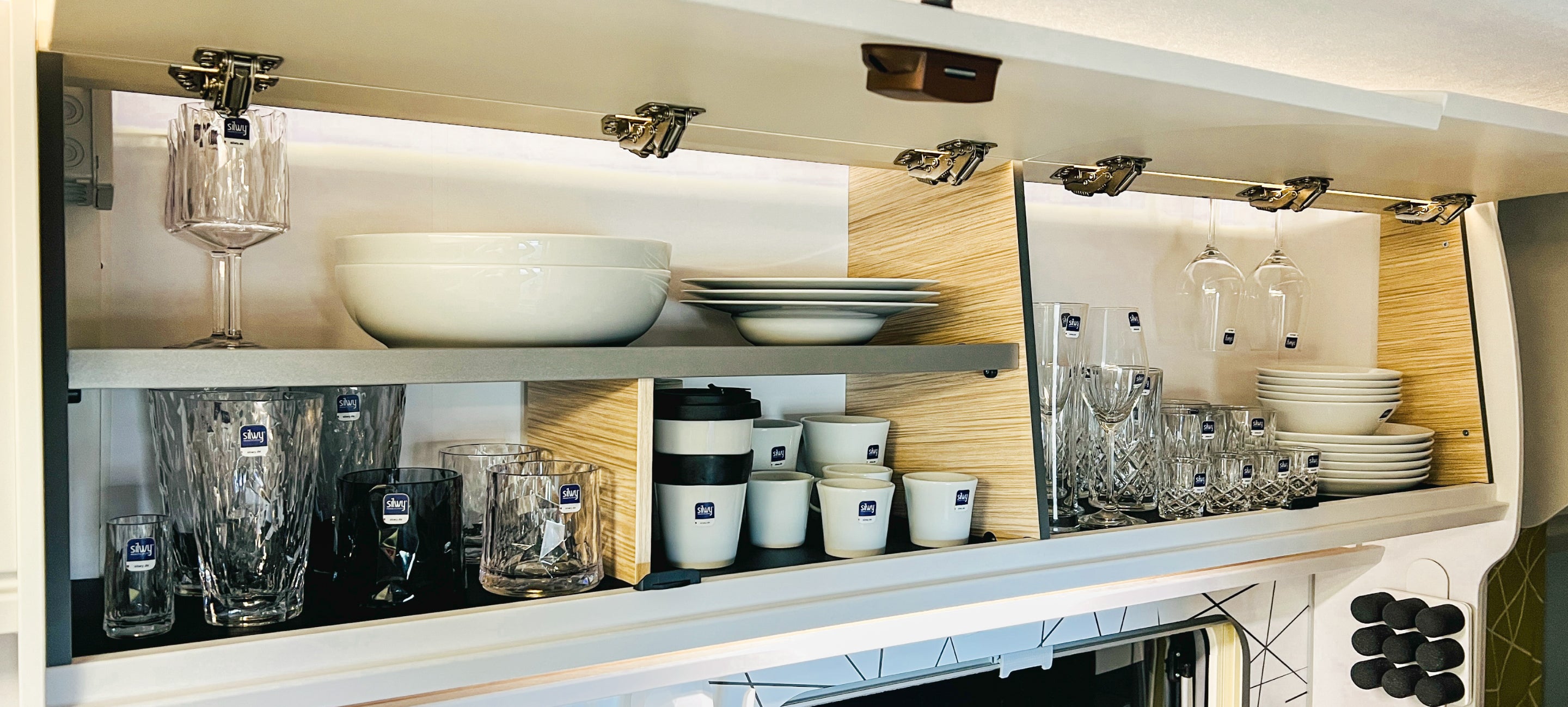 Mit silwy® verwandelst du dein mobiles Zuhause – ob Wohnmobil, Van oder Boot – in einen Ort zum Wohlfühlen. Gläser, Tassen und Teller bleiben sicher an ihrem Platz – selbst während der Fahrt.